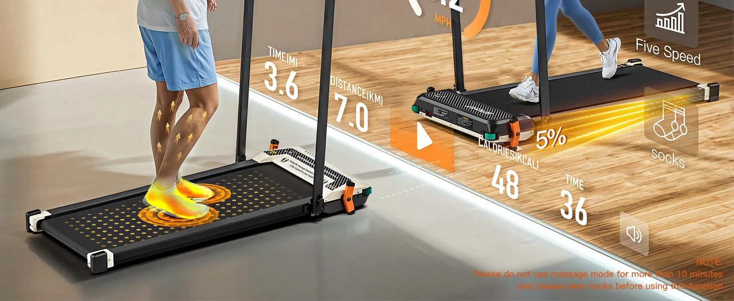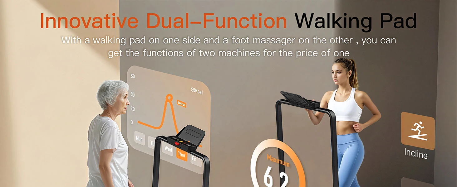 【Innovative Dual-Function Walking Pad】Our product is a unique blend of fitness and relaxation, offering you the dual advantage of a treadmill and a foot massager in one sleek, space-saving device.