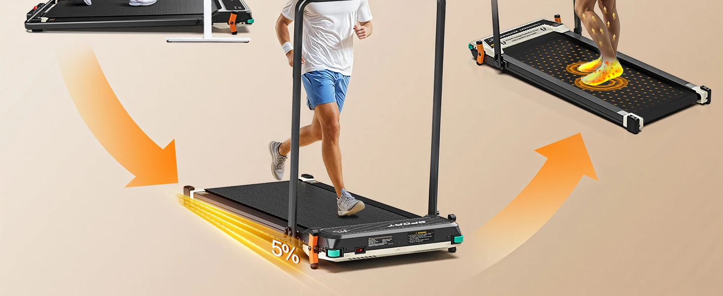 【Customizable Multi-Mode Walking Pad】Our versatile device offers walking, jogging, massage, and dog-running modes. With an innovative flip design, it meets the varying needs of every family member, making it an ideal all-in-one solution for home gyms.
